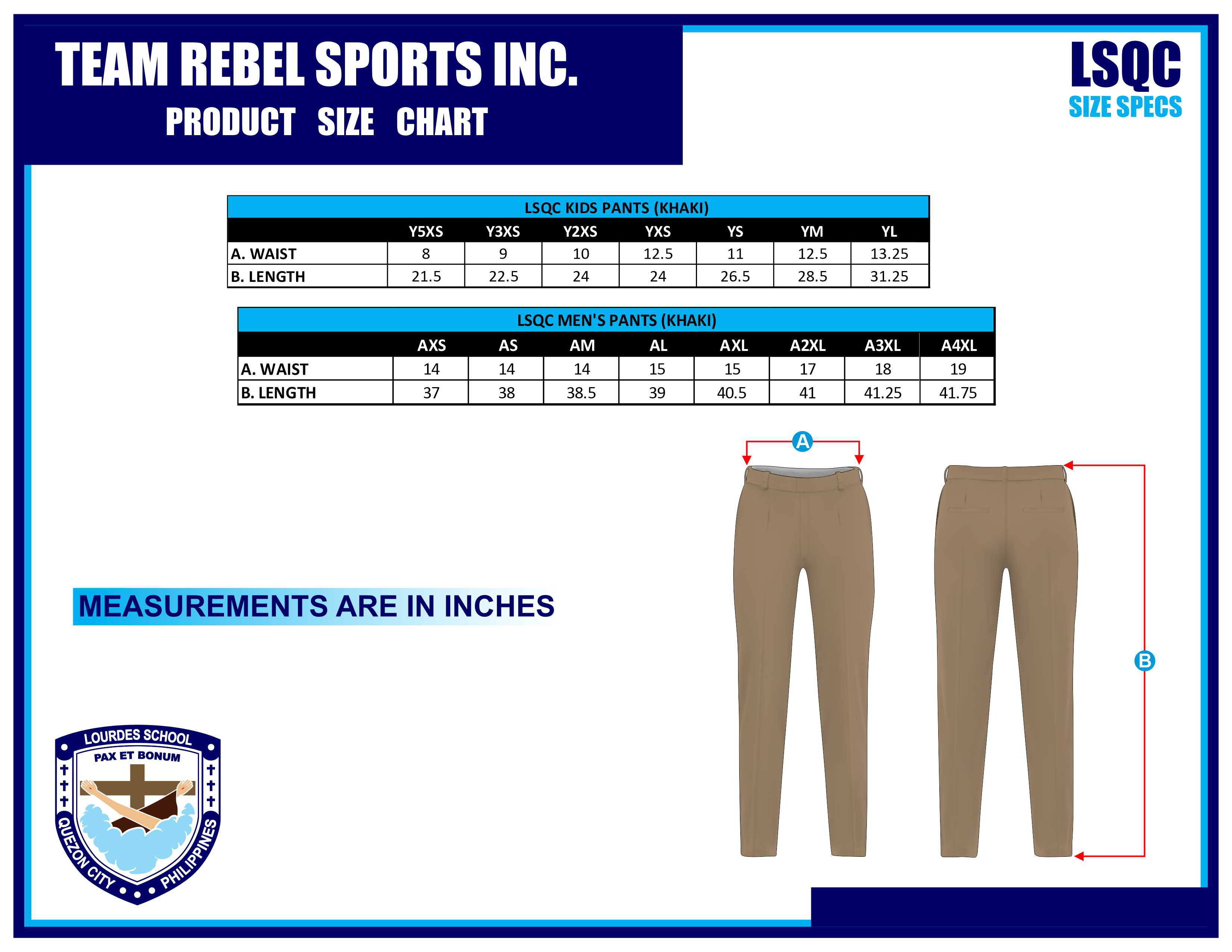 Khaki pants. Price varies per size.